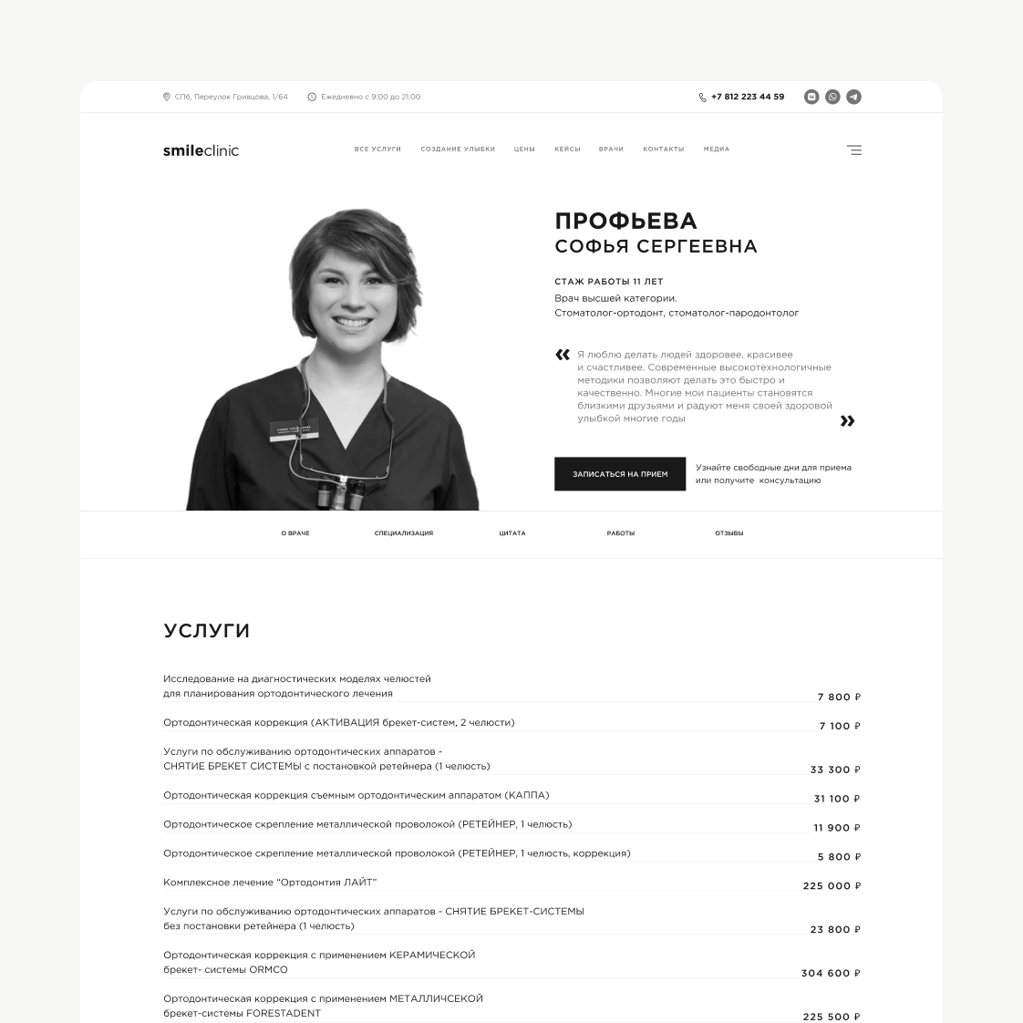 Создан сайт с интуитивно понятной навигацией и стильным дизайном. На сайте представлены подробные описания услуг, информация о специалистах и отзывы пациентов, а также реализована возможность онлайн-записи на приём, что повысило удобство взаимодействия с клиникой и привлекло новых клиентов.
